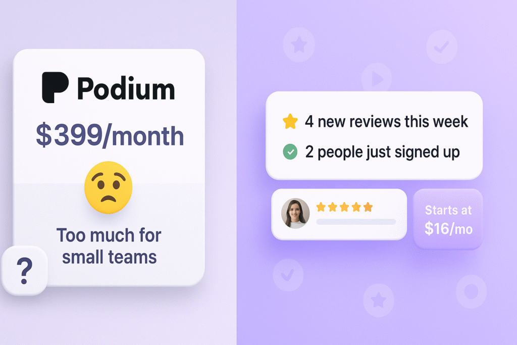 Podium’s Core plan starts at $399/month, which many small businesses say is too expensive for the basic features they actually use.
