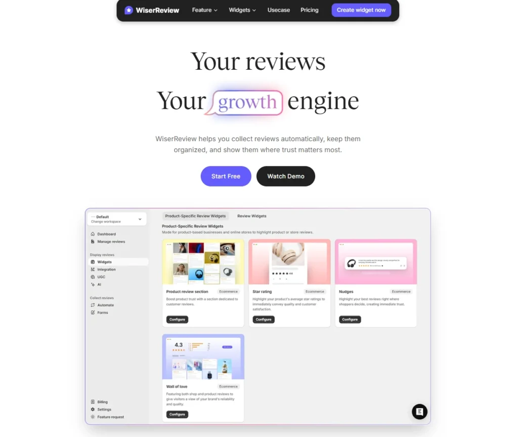 WiserReview is a good choice if you want to collect and show reviews in different ways.